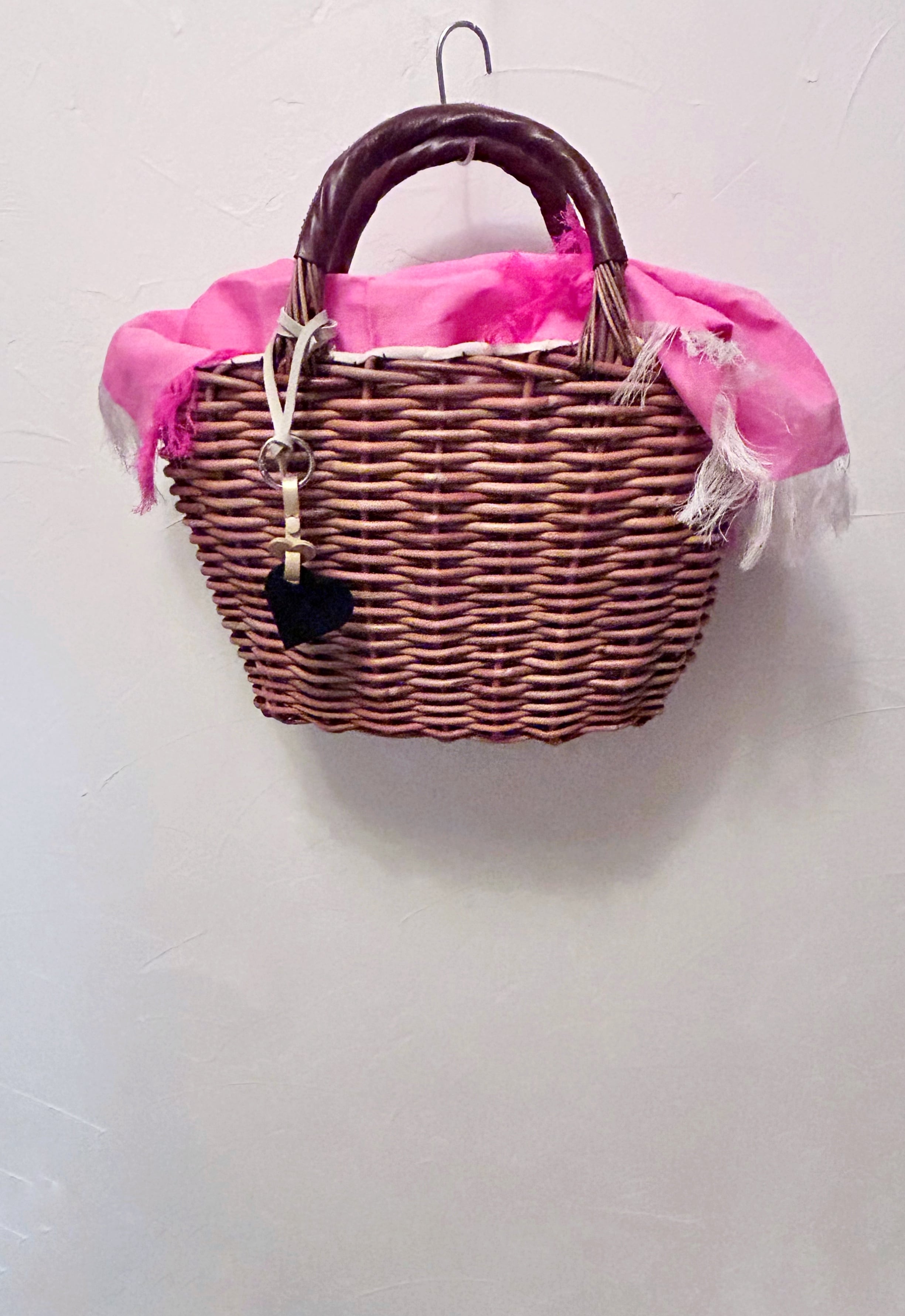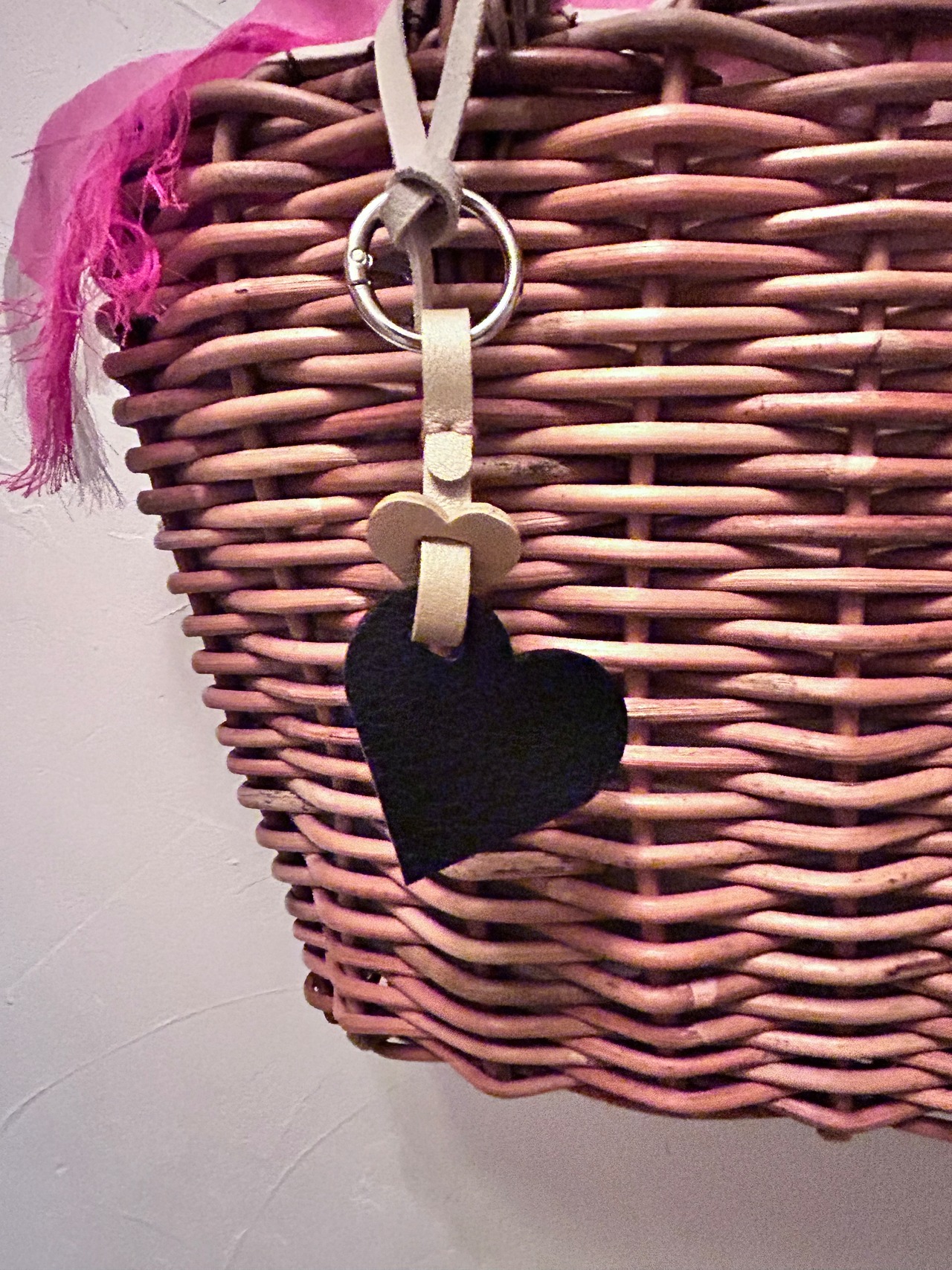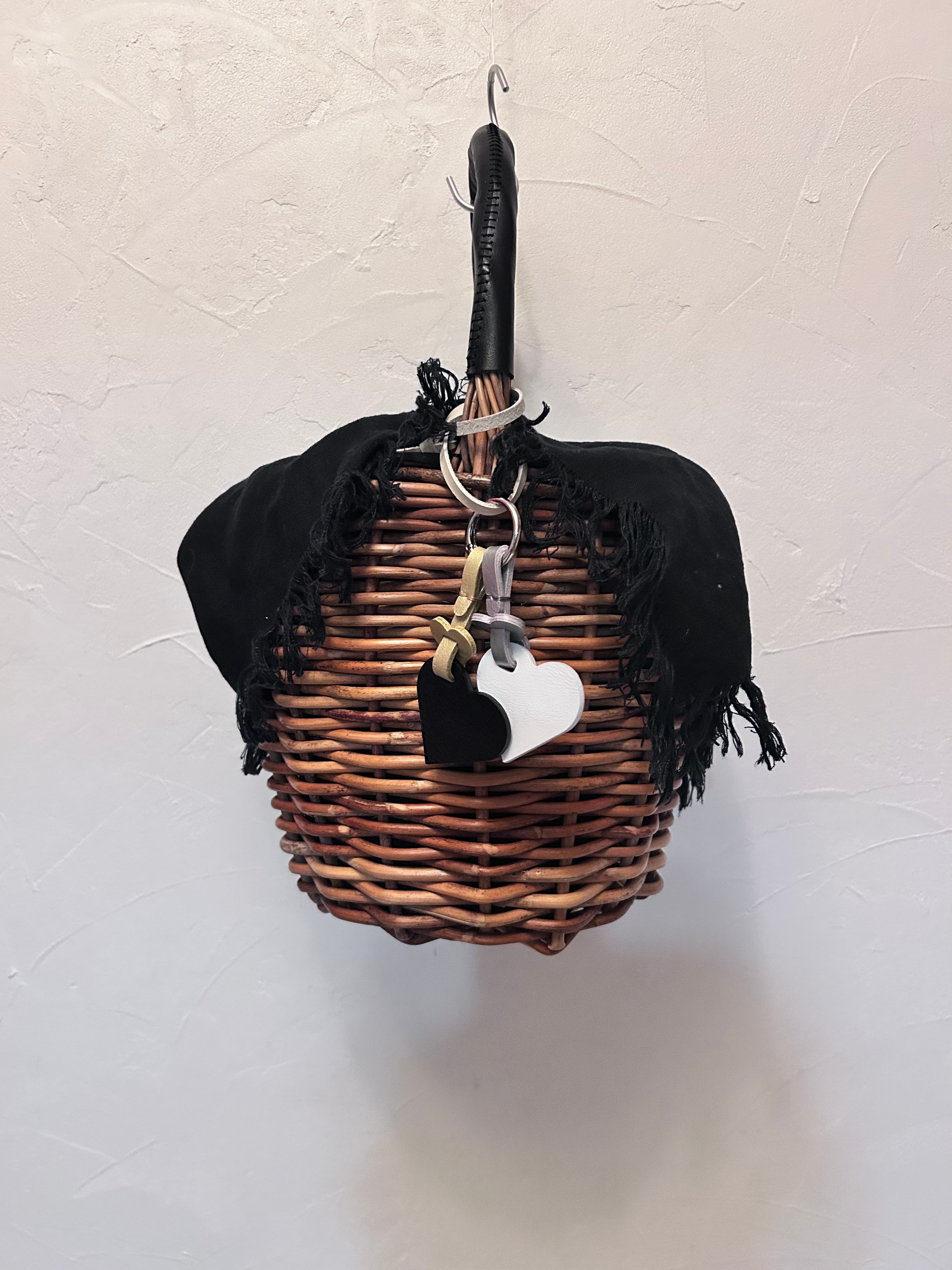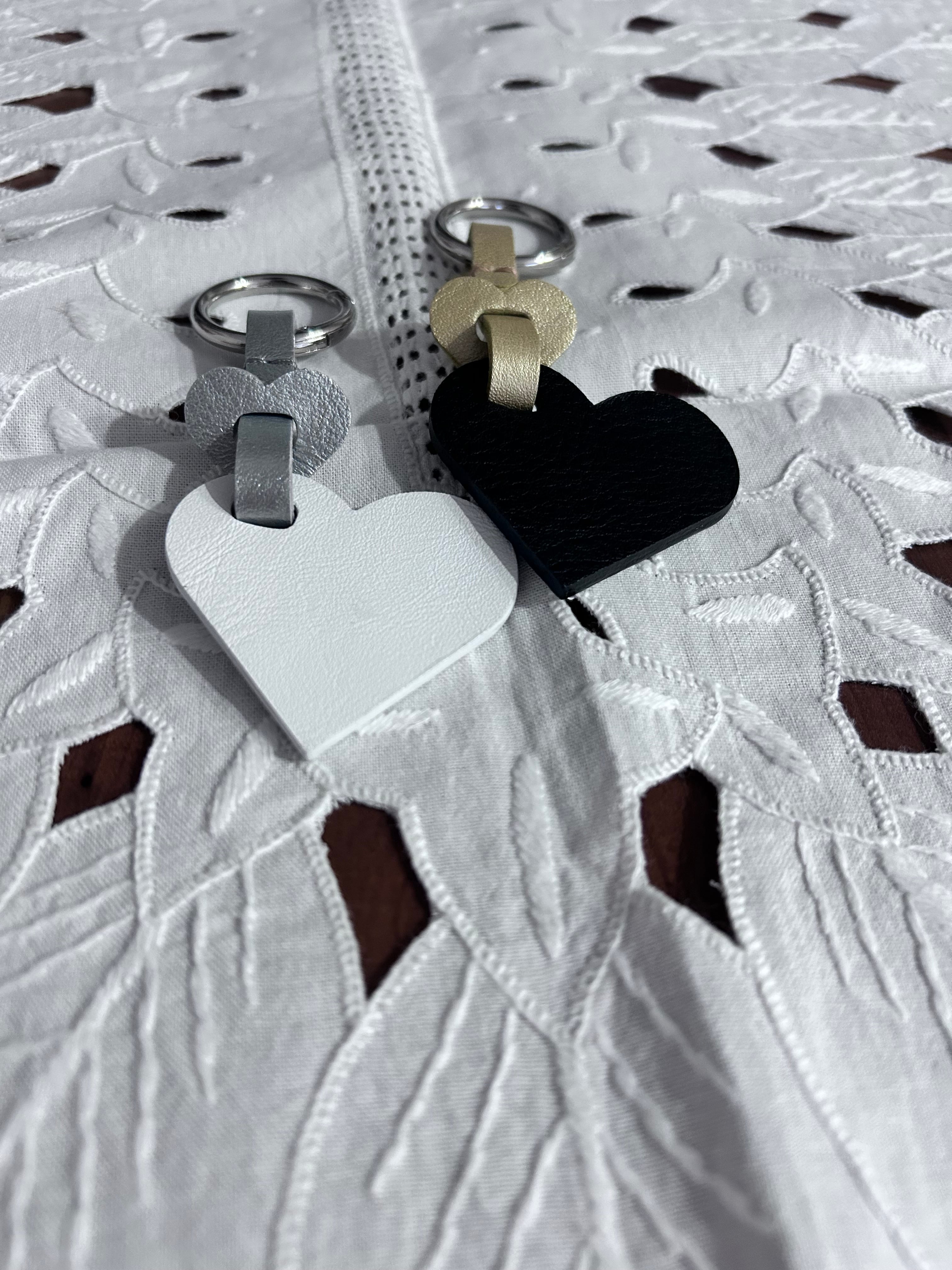 即納品 ブラックレザーのダブルハートチャーム