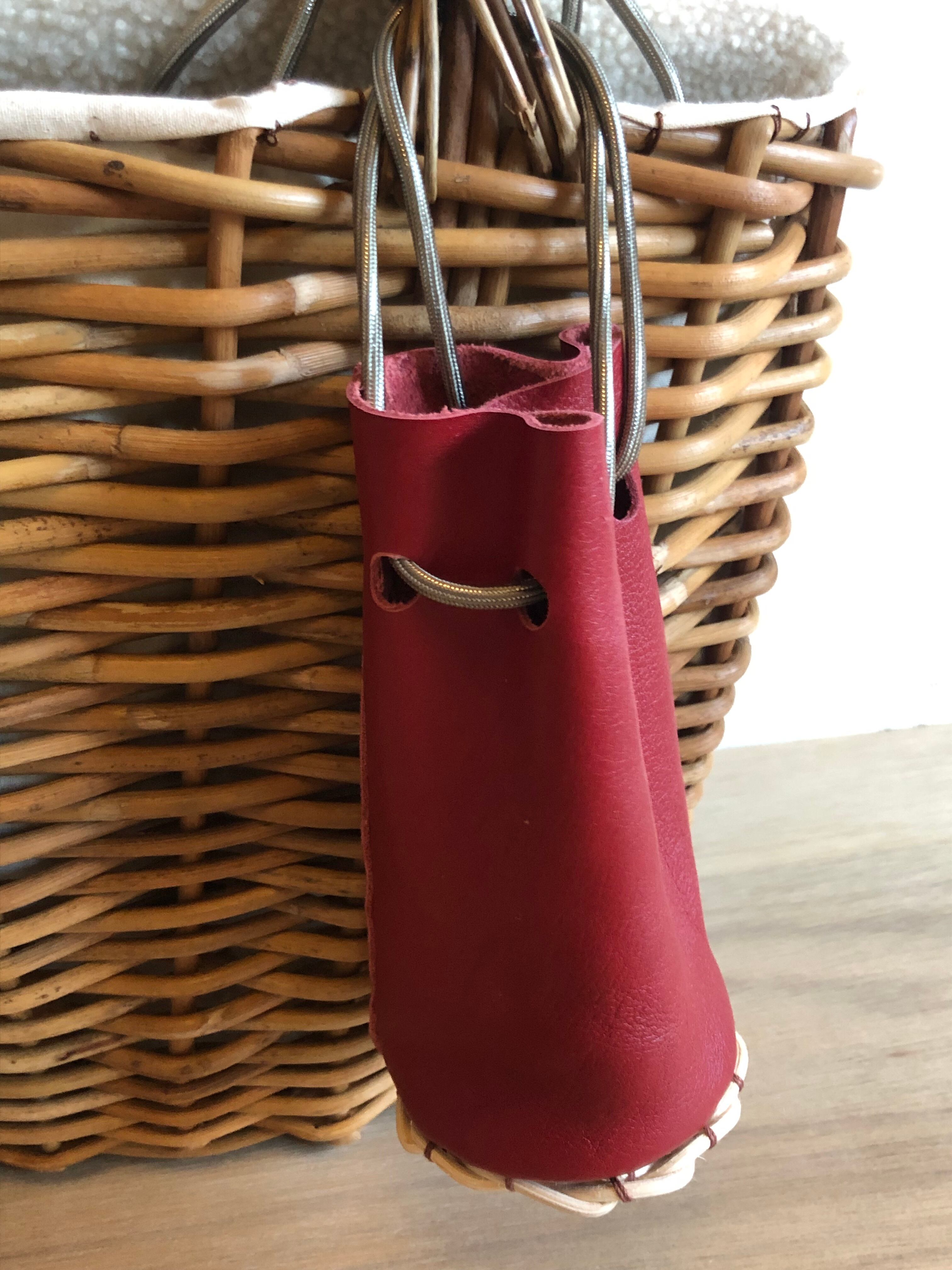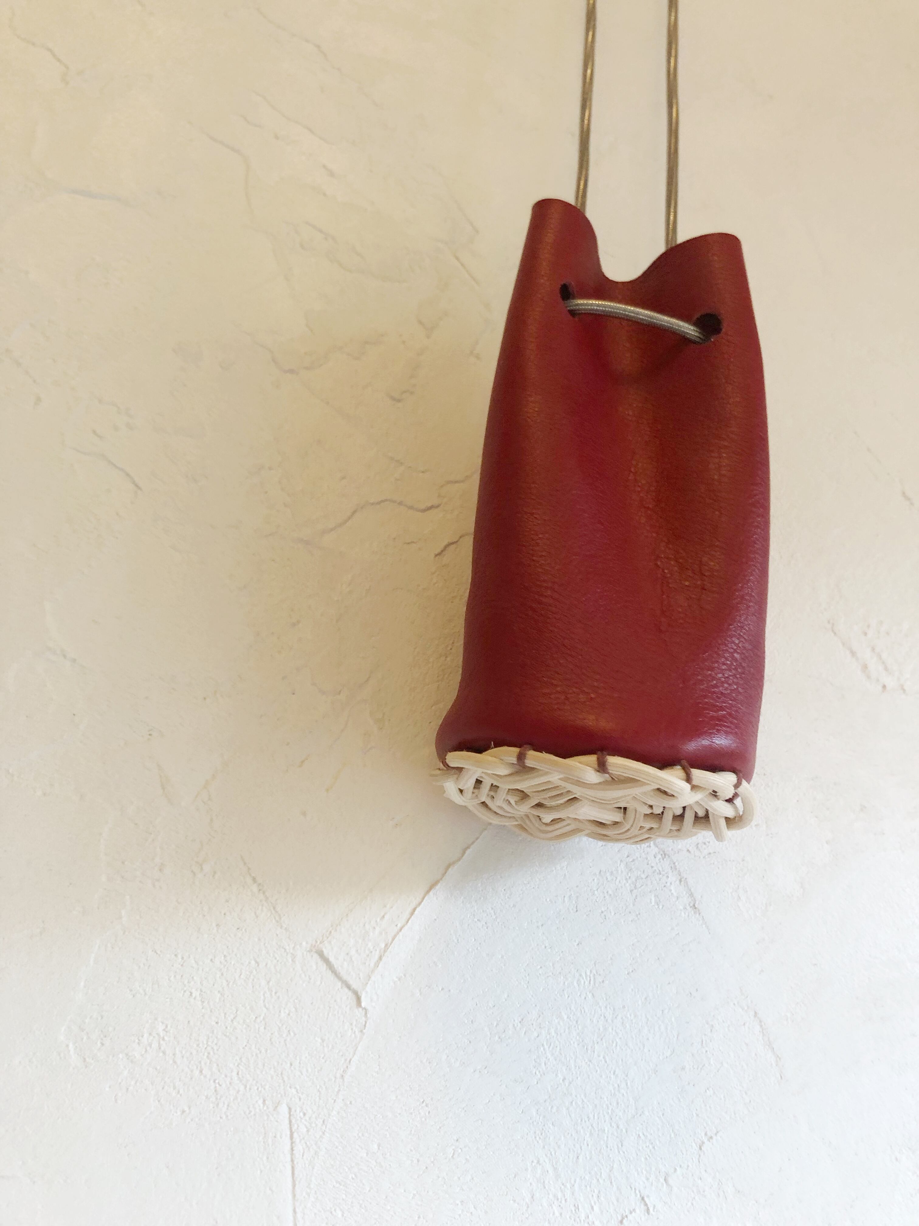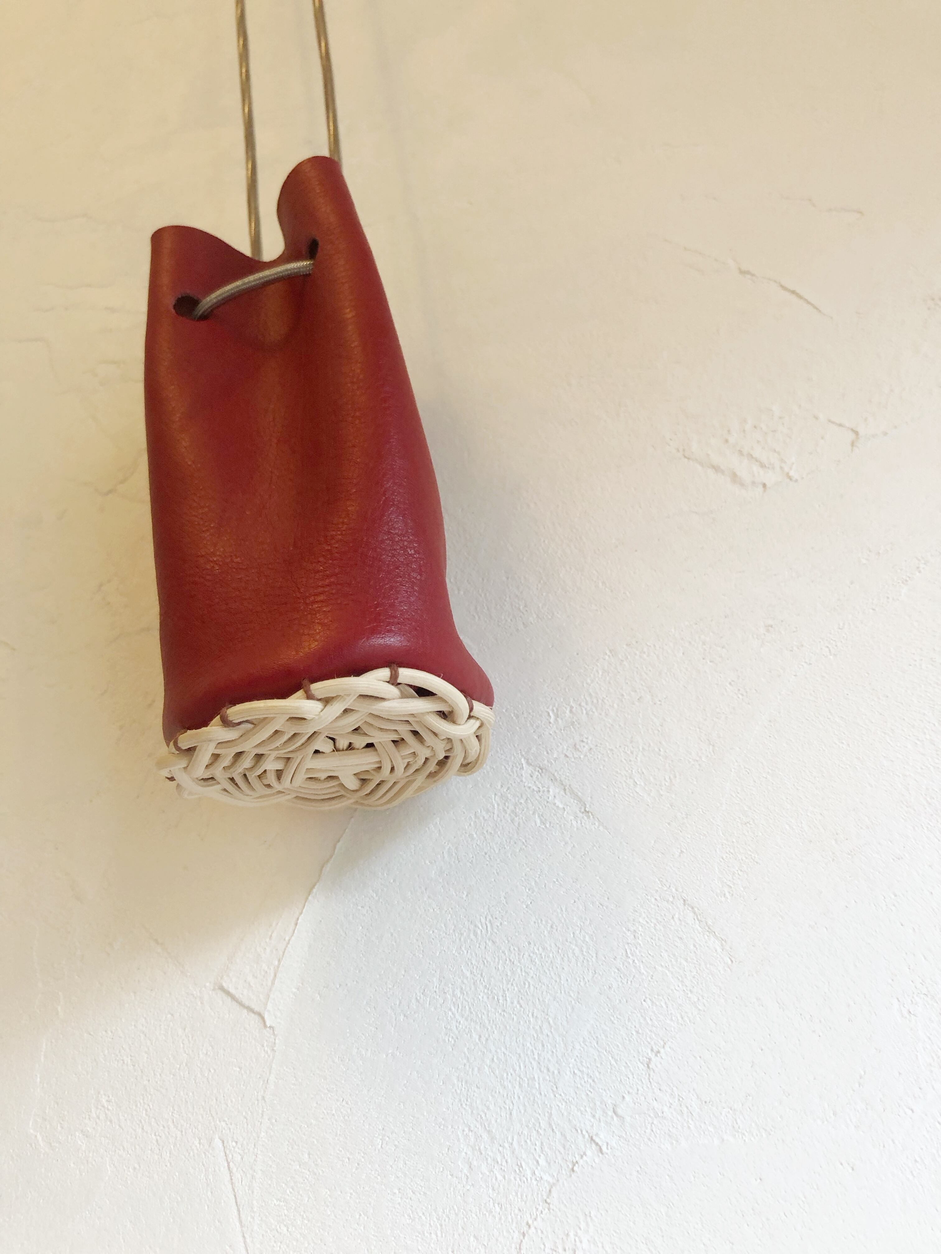 鮮やかな赤のミニ巾着。